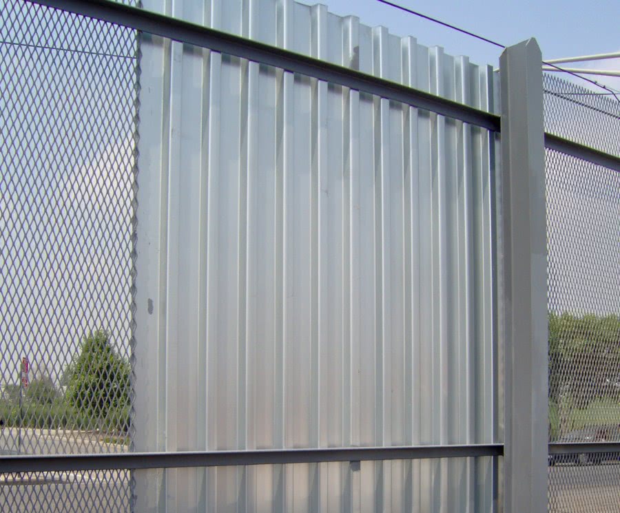 Забор из красивого серого профилированного металла