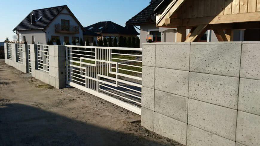 Внизу модульное металлическое ограждение обычно имеет невысокий фундамент, защищающий от животных, делающих лазы, подкопы. Вместо металлических столбов пролеты закрепляют на бетонных, кладочных столбах – например, из: