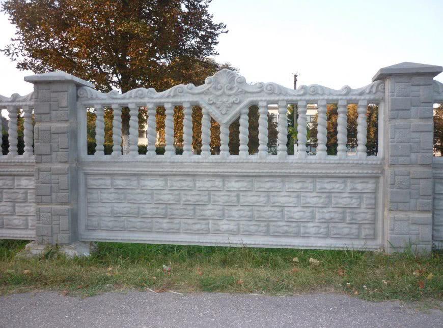 Наиболее надежным и практичным считается бетонный забор, выполненный одной заливкой или набранный из отдельных секций. Внутри ограждение укреплено армированием, не требует дополнительного крепления, ухода, подкрашивания.
