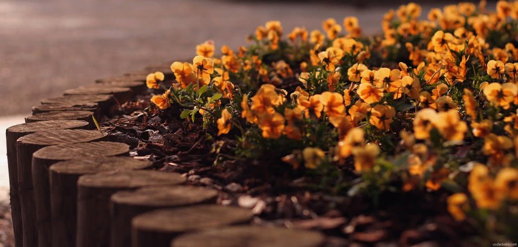 Древесина – очень податливый и гибкий материал, поэтому из него можно создать множество интересных и оригинальных заборчиков. Например, очень красиво смотрится деревянный забор для клумбы, созданный из частокола или закопанных в землю колышков. В качестве материала для ограждения также можно использовать срезы бревен или небольшие бревнышка, установленные вертикально или под наклоном.