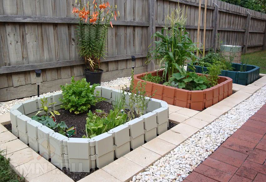 Многие дачники изготавливают садовые заборчики для клумб из кирпичей, вкапывая их вдоль цветника под наклоном или же укладывая горизонтально. Так же, как и камни, кирпичи можно выкрасить в разные оттенки.