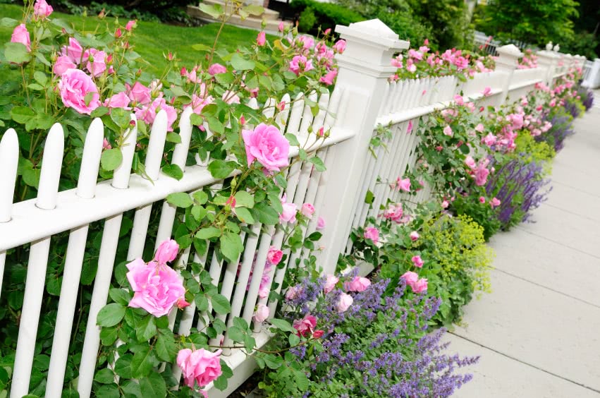 Подбирая растения, которые высадите в такую ограду, учитывайте не только эстетическую составляющую, но также и размер цветов, ведь в случае чего этот вид забора нельзя будет расширить.