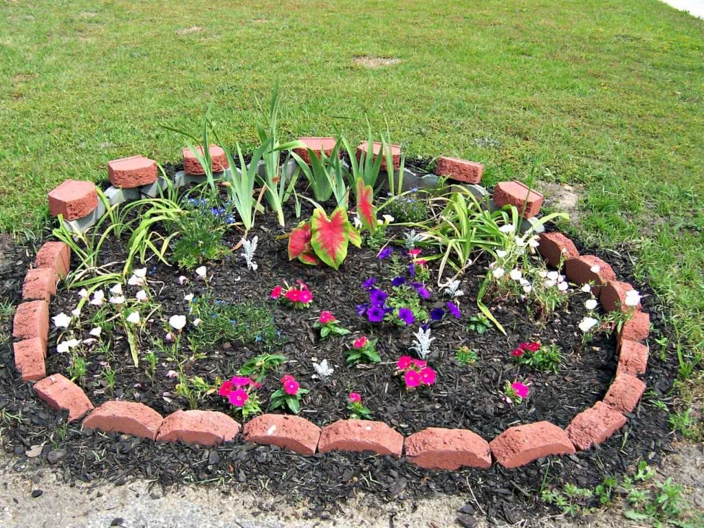Обломки и половинки кирпича можно использовать для ограждения клумбы своими руками .
