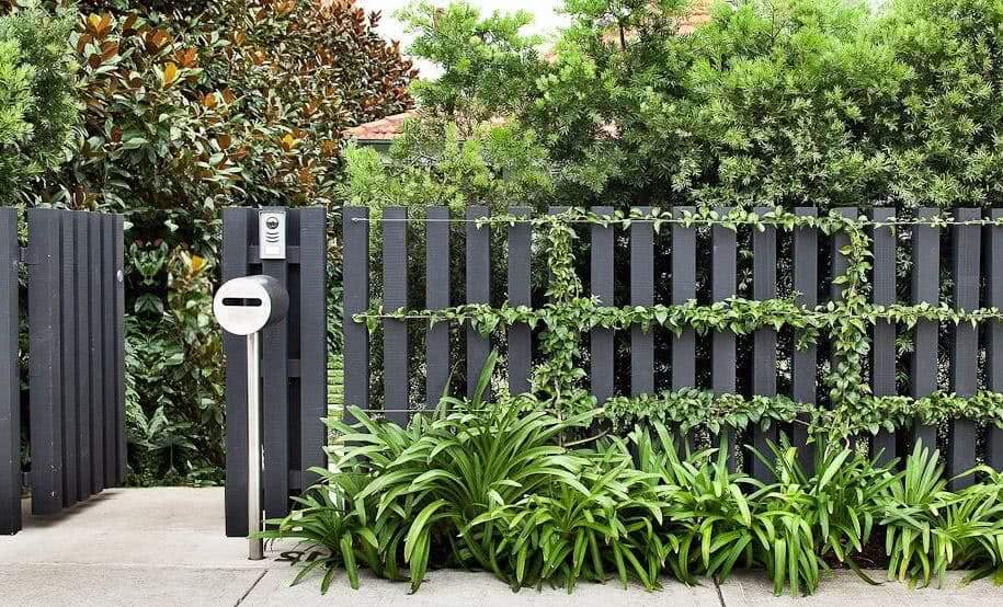 - Глухая изгородь – она представляет собой сплошную конструкцию, в которой нет никаких просветов. Этот тип обеспечит защиту в частном доме от любопытных взглядов и пыли с проезжей части.