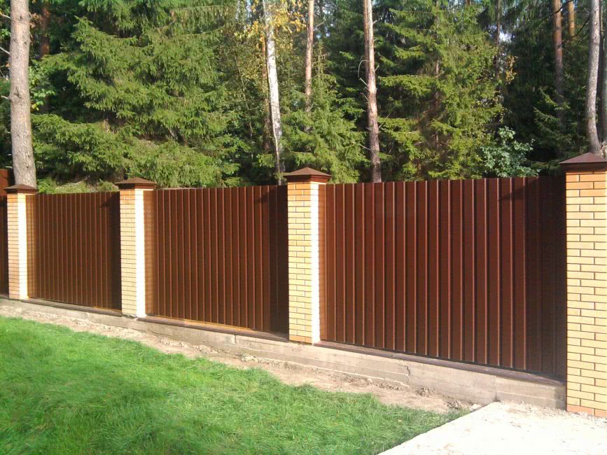 Если вид ограждения не столь важен, а участок находится под защитой либо охраной, то владельцу частного дома лучше остановить свое внимание на сооружении из профилированного листа