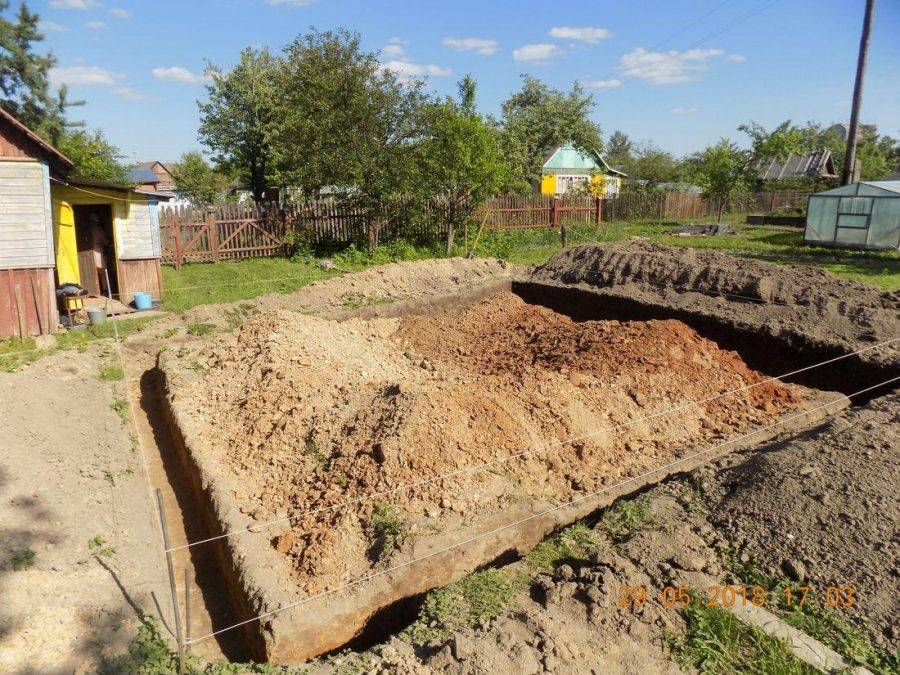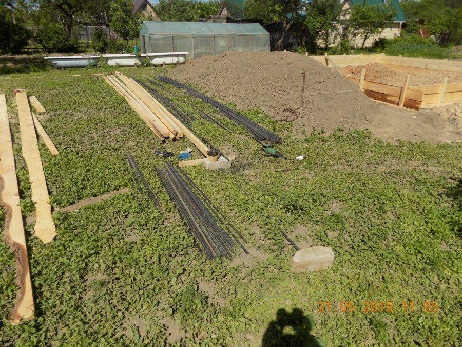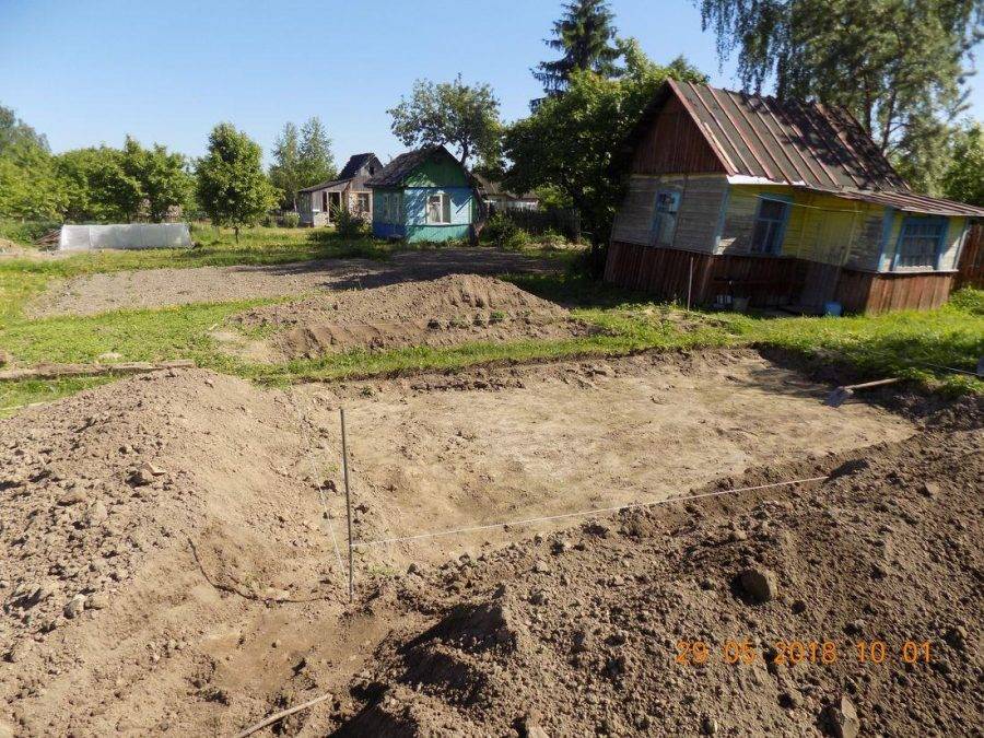 Уровень расположения грунтовых вод должен быть ниже, чем расчетная глубина траншей для бетонного основания. Перед началом работ необходимо снять верхний слой грунта, предварительно очистив рабочий участок от мелкого мусора, камней и растительности.