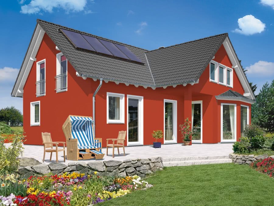 - современно смотрятся белые стены у дома с красной крышей или оранжевой.