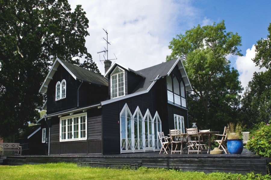 Темный фасад дома с контрастной крышей подойдет для новаторов