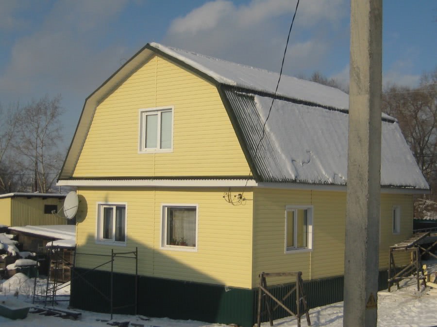 Небольшие, простые дома, обшитые сайдингом ярких оттенков, приобретут привлекательный внешний облик. Например, старая дача ярко-жёлтого цвета будет заряжать позитивным настроением прохожих.
