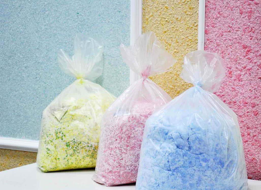 В продаже встречаются порошки разной фактуры – мелко- и крупнодисперсные. Это обеспечивает широкие возможности в исполнении любых дизайнерских решений. Как и большой выбор цветовых оттенков.