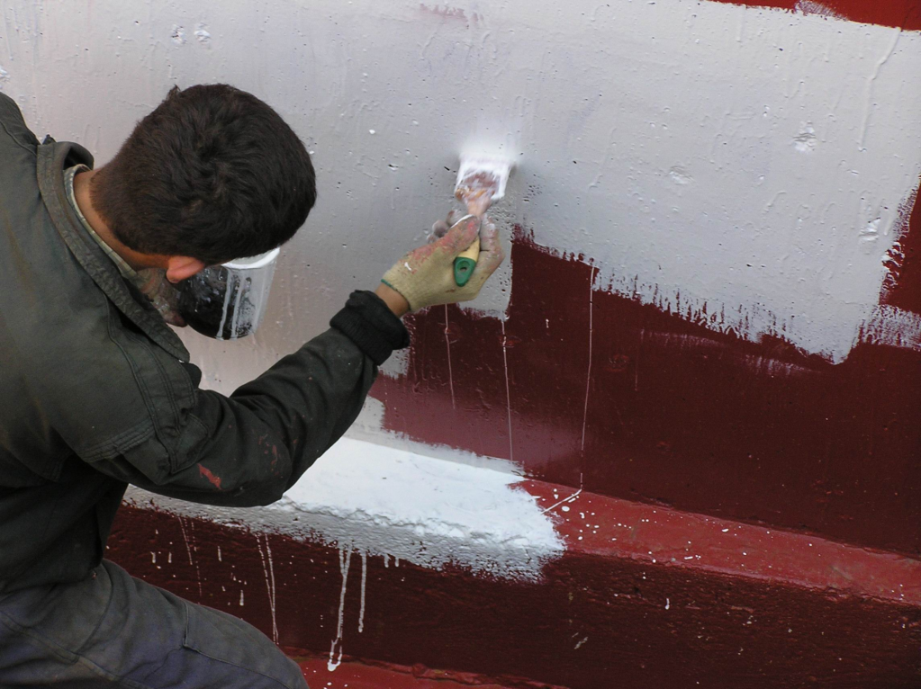 Нанесение мастики.Полиуретановая мастика наносится в 2-3 слоя.