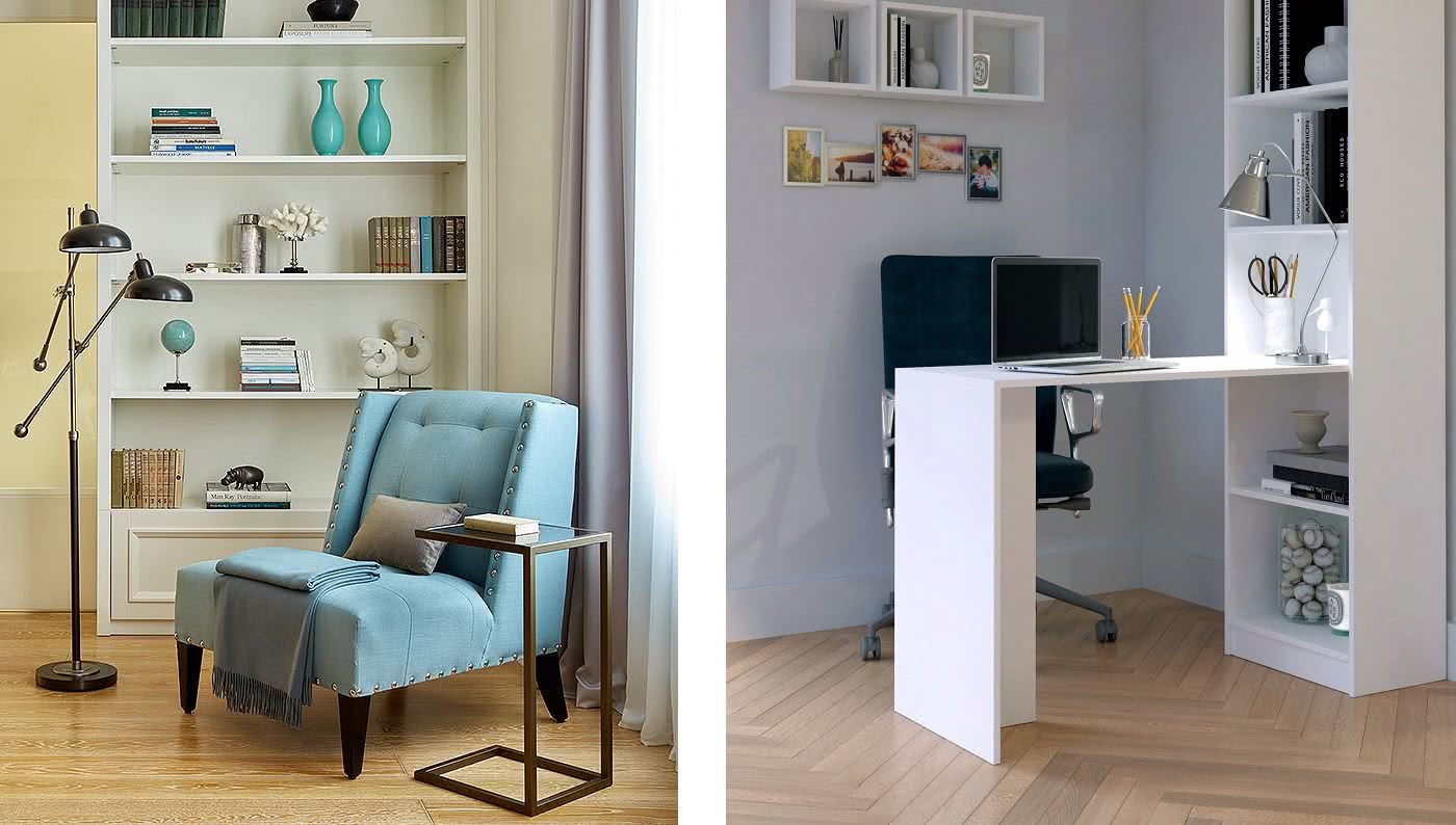 В бюджетных вариациях можно реализовать подобное решение и из обычных шкафов и стеллажей, соединив их в угловую конструкцию.